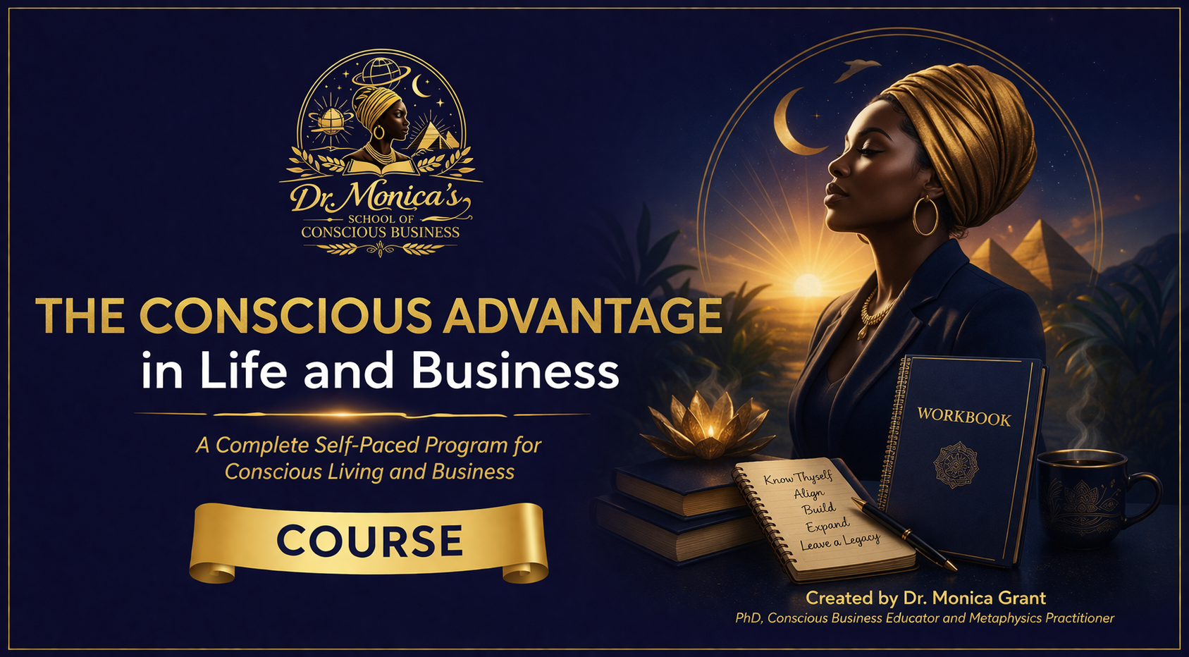 Hi, I’m Dr. Monica Grant, founder of the School of Conscious Business and creator of this program. I know what it feels like to reach a point where what you are doing no longer feels aligned, even if it looks successful on the outside. I created The Conscious Advantage for people who know they are capable of more but feel unsure about their next step. This program is designed to help you reconnect with your direction, understand your natural design, and begin building with clarity and purpose.